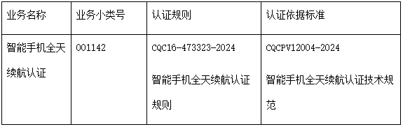 中国质量认证中心(英文缩写cqc)研发并推出了智能手机全天续航认证业务,具体信息如下: