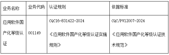 中国质量认证中心(英文缩写cqc)研发并推出了应用软件国产化等级认证业务,具体信息如下: